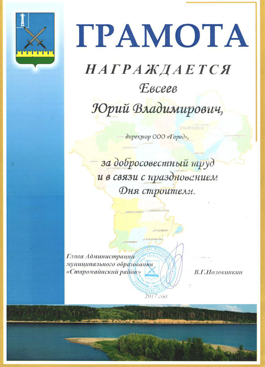 Строим с 2009 года. Не меняли юр. лицо. Награды и грамоты от руководства Ульяновской области.